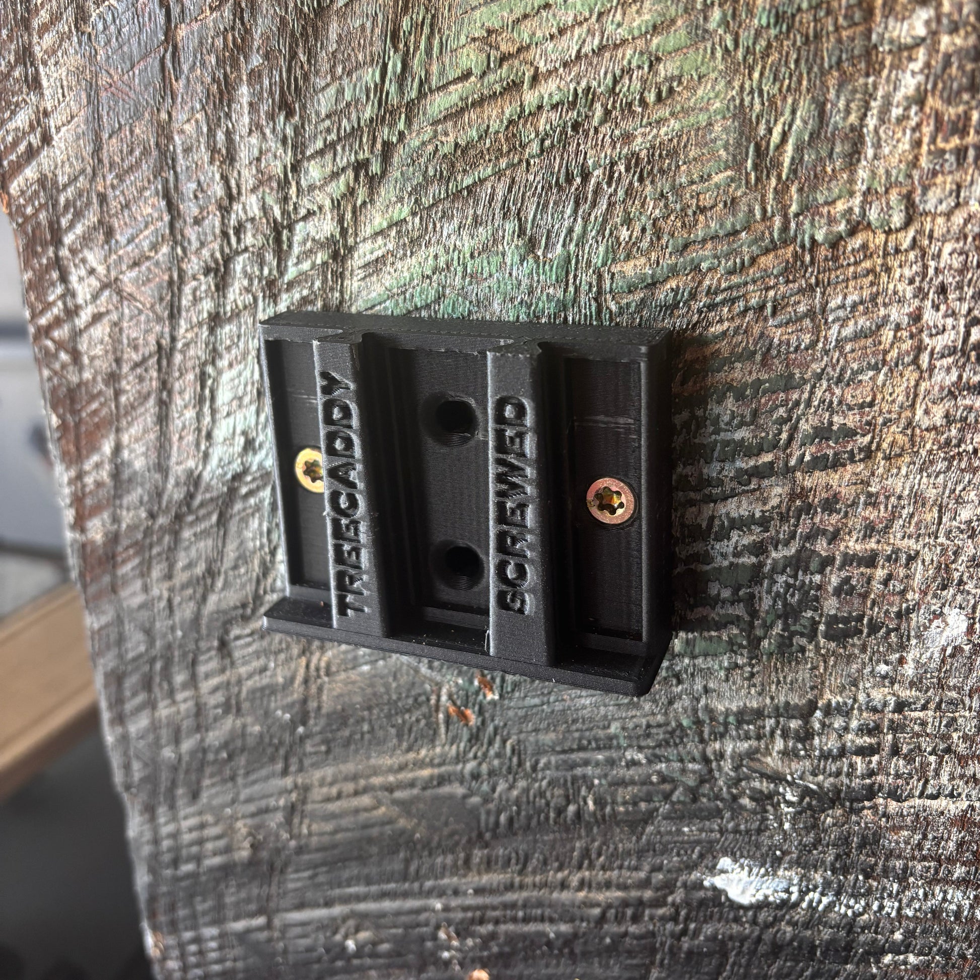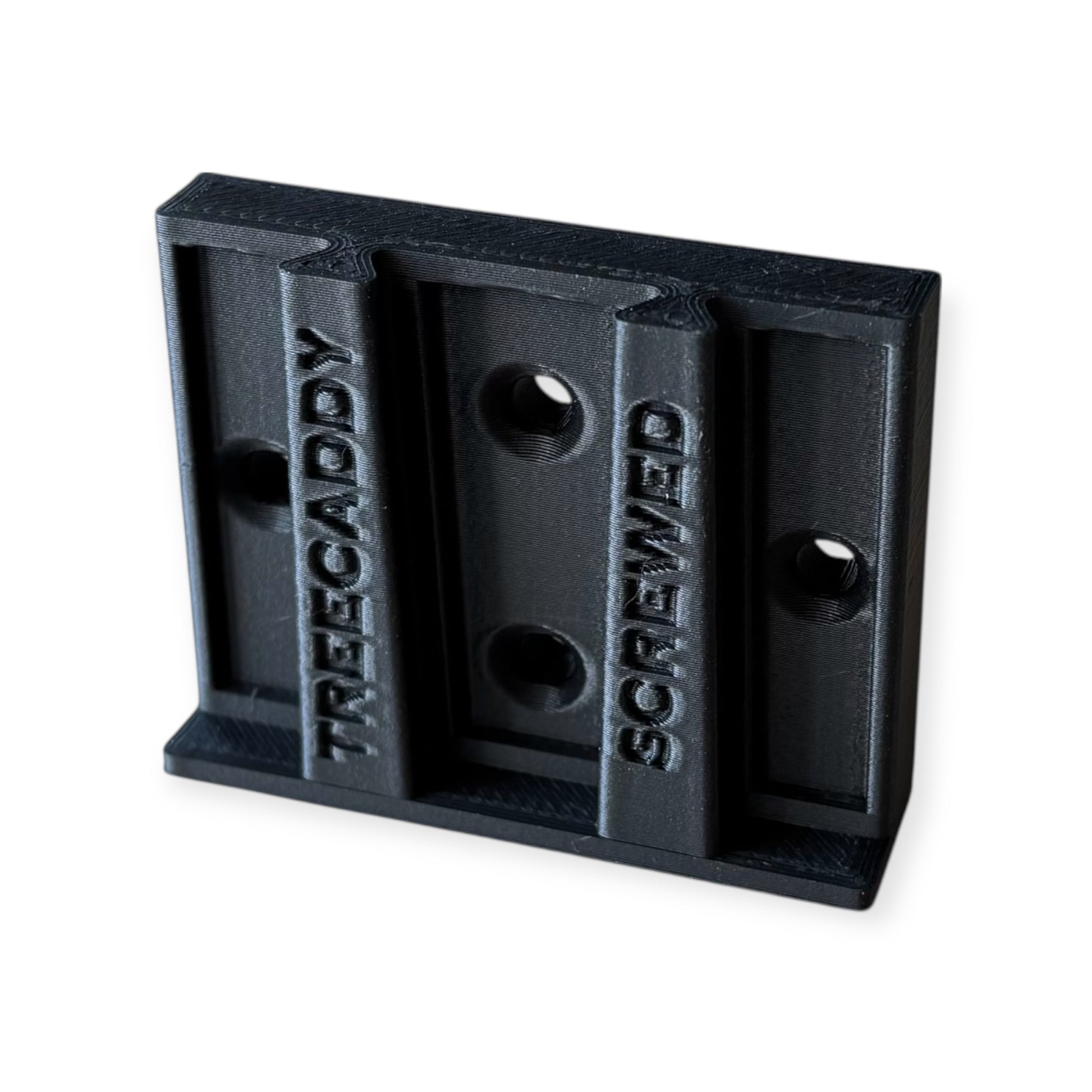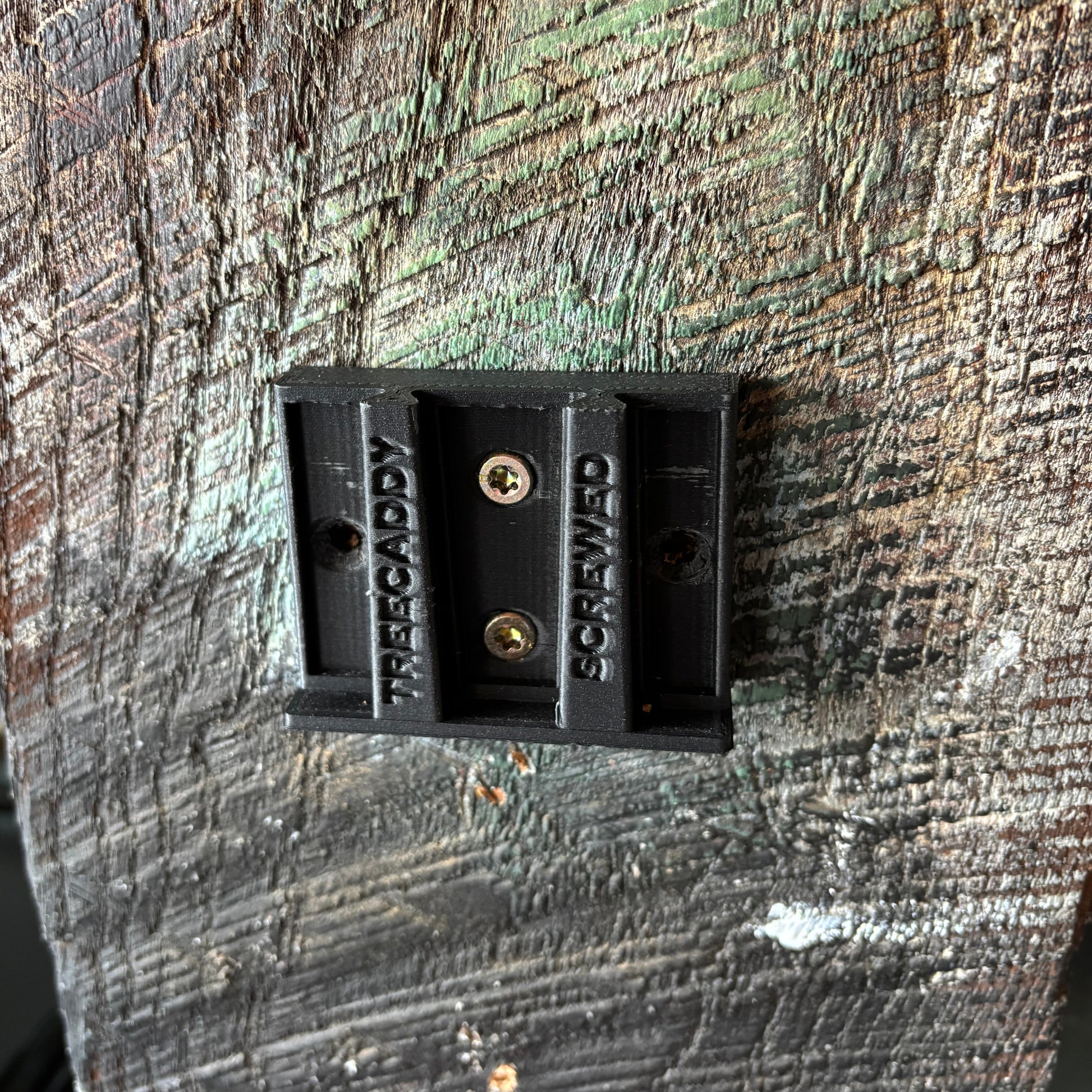 Screw this bracket to vertical surface and slide your TreeCaddy Flex onto it. Features horizontal and vertically aligned holes so you can mount to any stud or wall.